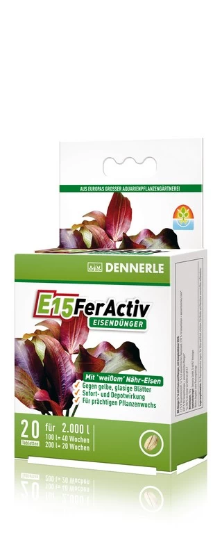* E15 FerActiv Eisendünger versorgt alle Aquarienpflanzen mit sofort wirksamem, 2-wertigen Nähreisen und sorgt so für frisches, prachtvolles Grün.