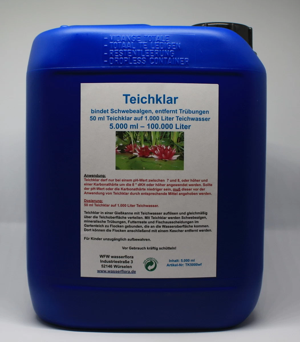 5 Liter Kanister Teichklar – gegen grünes Teichwasser (Schwebealgen) im Gartenteich, für 100.000 Liter Teichwasser