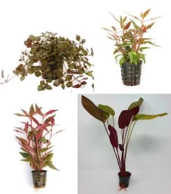 Anubias Quartett: 4x Anubias-Töpfe = Barteri + Nana + Petite + Golden, Barschfeste Wasserpflanzen