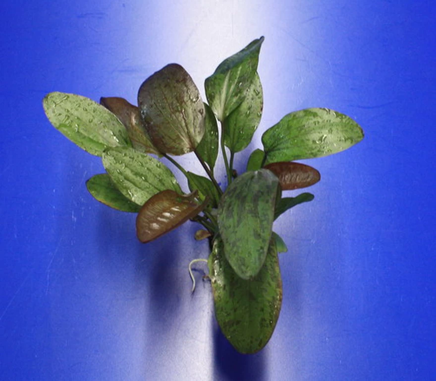 Diese schnellwüchsige und anspruchslose Schwertpflanze ist eine sehr seltene Zuchtform mit sehr schönen roten Blättern bei den Neutrieben. Die Pflanze hat bei Lieferung noch ihre emersen nicht ganz so farbigen Blätter – so wie hier abgebildet. Unter Wasser zeigen dann die neuen submersen Blätter ihre prächtige Färbung. Eine gute Farbentwicklung erhält man bei hoher Beleuchtungsstärke und ausreichend Mikronährstoffen im Aquarium. Ein nährstoffreicher Bodengrund und eine CO2-Zugabe fördern das Wachstum.