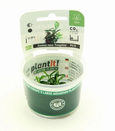 Anubias barteri var. nana ‚Pangolino“ ist die kleinste Zwergform der Anubias nana und damit das kleinstblättrige Zwergspeerblatt, die lanzettlichen Blättchen sind nur 1 – 2 cm groß – eine botanische Rarität. Sie gedeiht unter allen Bedingungen und kommt aufgebunden auf einem Stein oder einer Wurzel sehr gut zur Geltung. Sie wird während sie anwächst einfach mit einer Nylonschnur fixiert. Sie blüht sehr häufig unter Wasser und wird wegen ihrer Bitterstoffe nicht von Barschen oder anderen pflanzenfressenden Fischen gefressen.