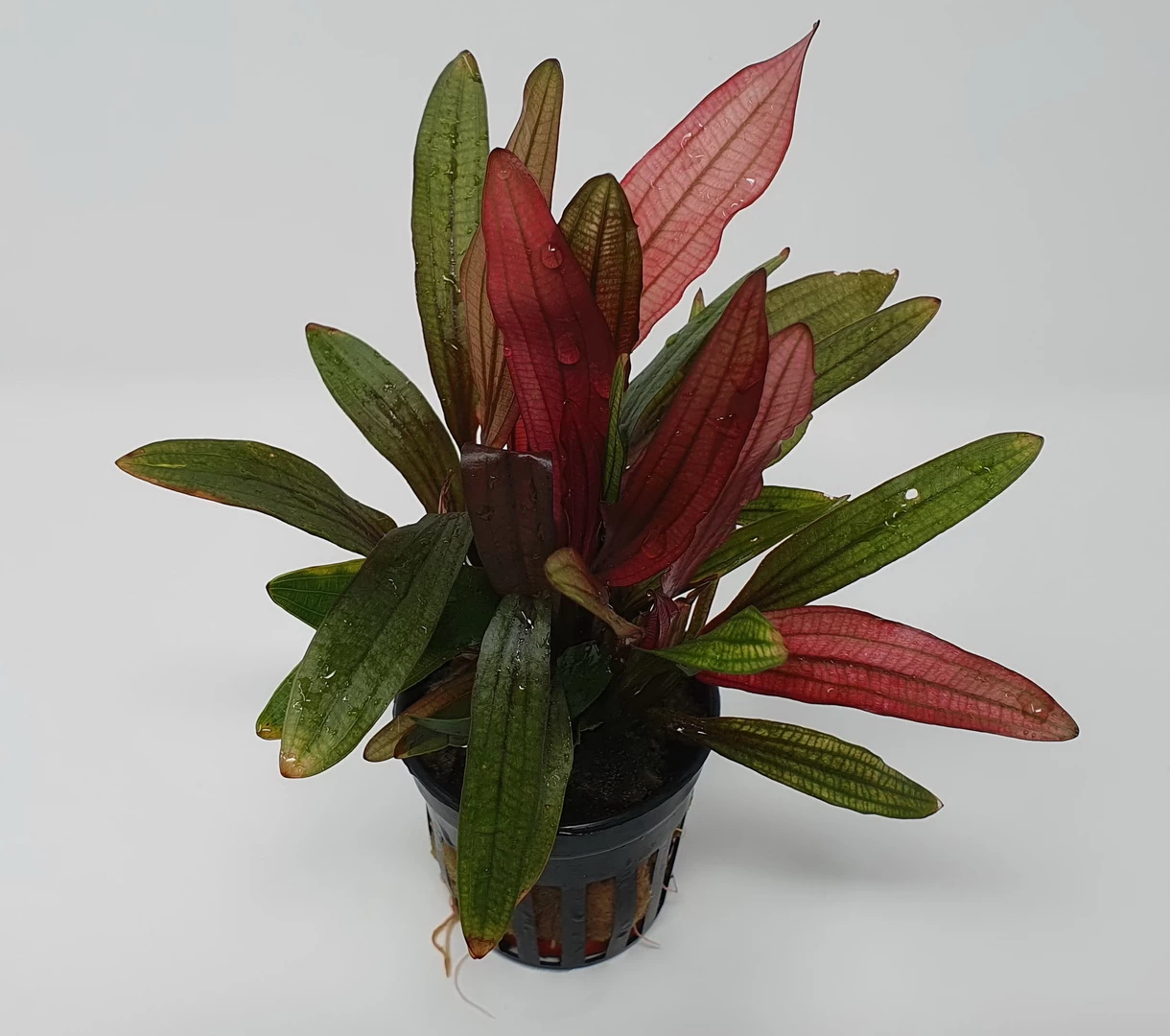 Echinodorus miracle eine der schönsten roten Amazonas- Schwertpflanzen. Diese markante Besonderheit ist eine Kreuzung zwischen Echinodorus Horemanii Red und Echinodorus Barthii. Diese Schwertpflanze hat eine super bunte Farbpalette, einschließlich rosa, rot und tiefrot, ähnlich der beliebten Cryptocoryne Flamingo. Echinodorus miracle hat ein schmales, ovales, spitzes Blatt, das einer länglichen Eiform ähnelt. Der Wuchs ist klein – mittelgroß und kompakt, somit für jedes Aquarium geeignet. Diese erstaunliche Wasserpflanze ist ein Blickfang für jedes Aquarium. Eine kräftige Beleuchtung und ein nährstoffreicher Bodengrund fördern das Wachstum.