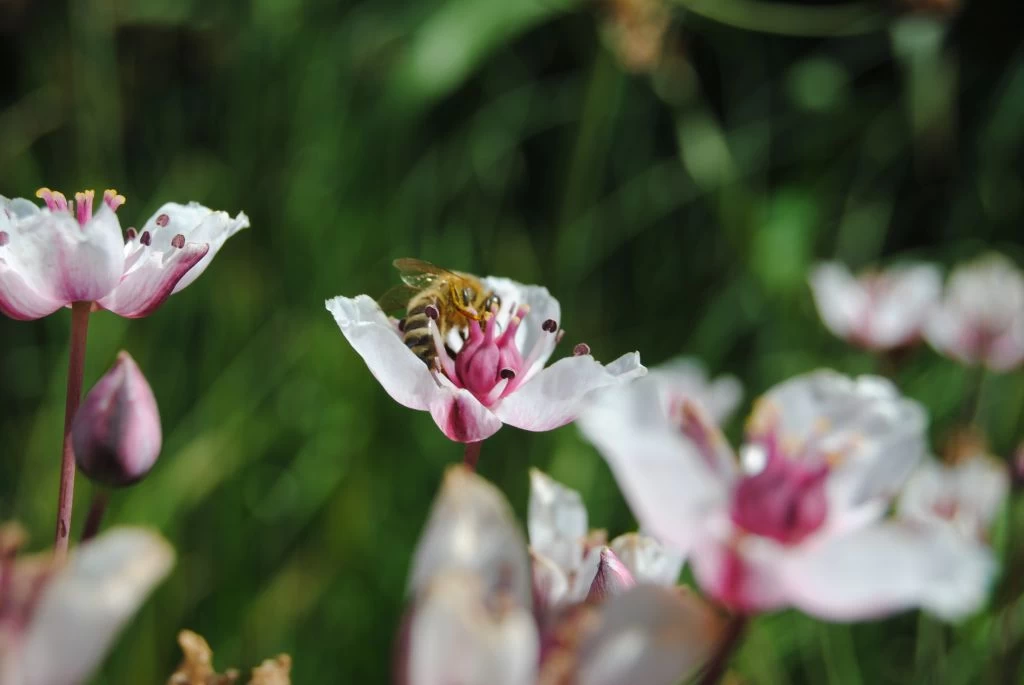 Die Schwanenblume auch Blumenbinse, Wasserliesch, Doldige Schwanenblume oder Wasserviole genannt und ist eine beeindruckende, einheimische Wasserpflanze mit einer schönen weißen Blüte. Bei ausreichender Nährstoffversorgung treibt sie von Juni bis August zahlreiche Blütendolden hervor. Sie ist eine widerstandsfähige Teichpflanze mit binsenähnlichem Laub – eine sehr wertvolle Wildform und absolut winterhart.